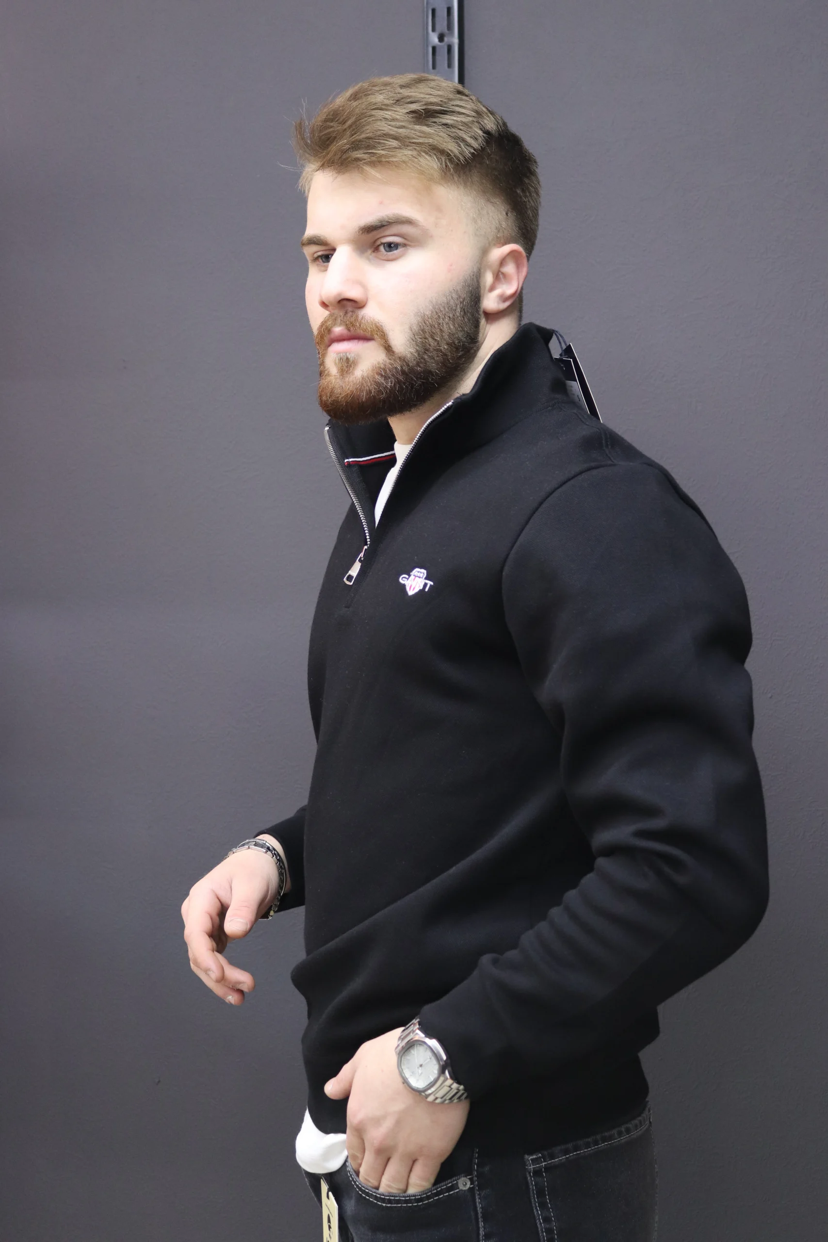 GANT Siyah Yarım Fermuar Triko