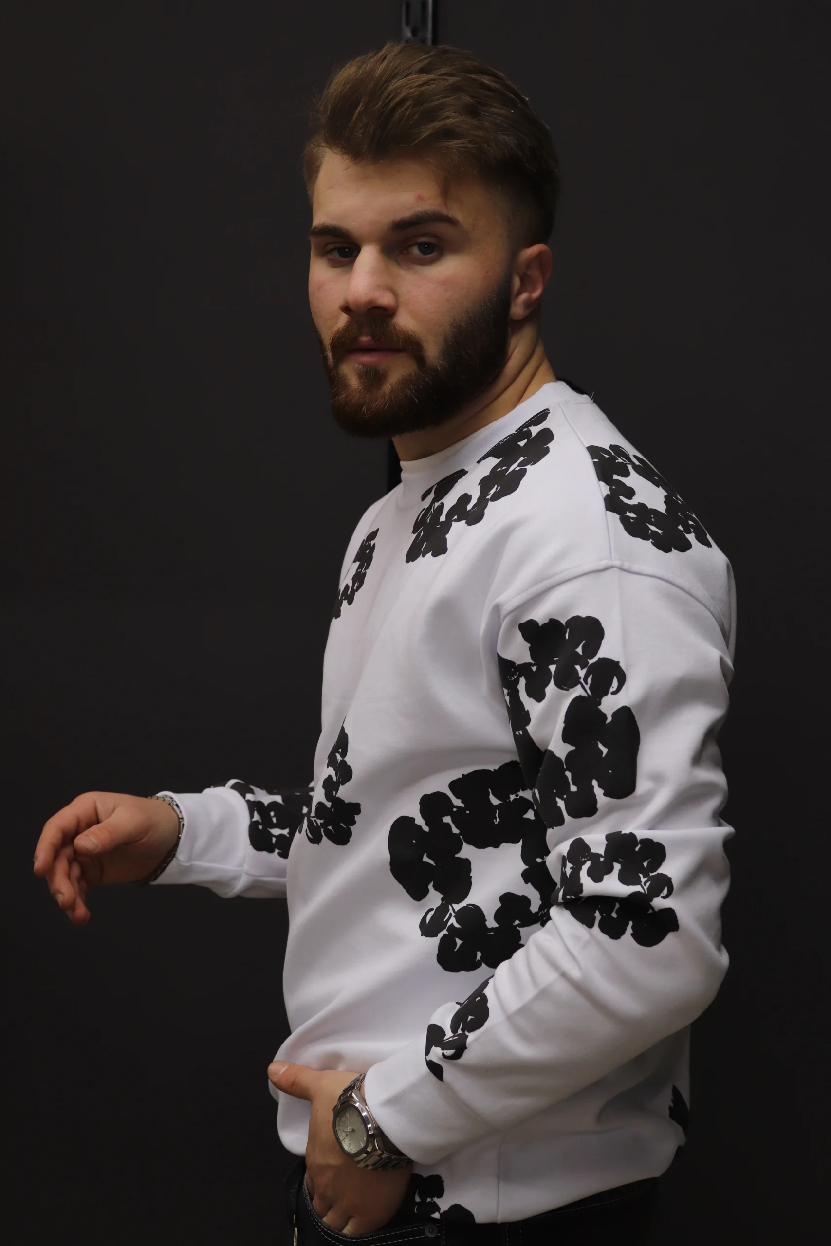 Siyah Yonca Baskı Bisiklet Yaka Sweat